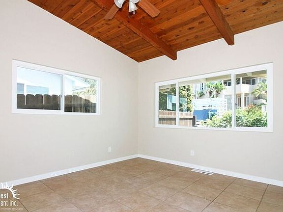 Spacious 2Bdm 2Ba Home in Cardiff Walking Distance to the Beach & Entertainment! This charming home offers the perfect balance of coastal living and convenience. Step into a bright and open living room with vaulted wood-beamed ceilings and large windows that bring in an abundance of natural light. The cozy fireplace is perfect for cool evenings, while the spacious kitchen is equipped with modern stainless steel appliances, including a refrigerator, dishwasher, stove/oven, and built in microwave. The two bedrooms are comfortable and feature vaulted ceilings and mirrored closets, while the upgraded bathrooms offer stylish finishes. The primary bath includes a beautiful shower tub combo. The outdoor space is a standout feature, with a large backyard and expansive patio deck ideal for entertaining, relaxing, or enjoying with family and friends. The attached garage and additional driveway parking provide convenience. Living here means you're within walking distance to some of Cardiff's best attractions, including the Cardiff Seaside Market, local cafes, and renowned restaurants like The Shorehouse Kitchen and The Encinitas Library. For outdoor enthusiasts, the famous Cardiff Reef is right around the corner, perfect for surfing or sunbathing. Tenant pays all utilities. Contact us to schedule a showing.