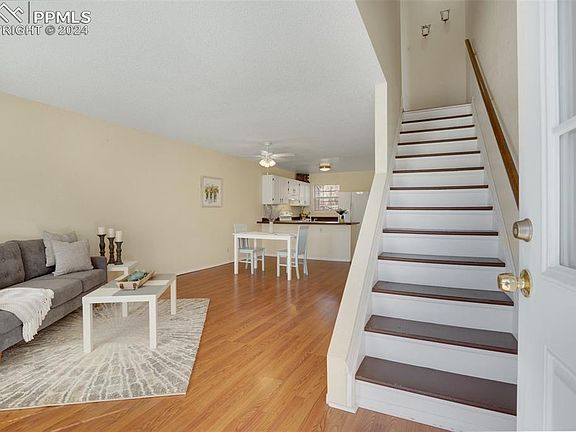 Welcome to your new home in the charming Gold Hill community of Colorado Springs! This delightful two-bedroom, two-bathroom condominium offers a cozy retreat nestled amidst the scenic beauty of the Colorado Rockies. As you step into the bright and airy living room, you're greeted by a south-facing bay window, perfect for basking in natural light or creating a cozy reading nook. The spacious dining area provides ample room for entertaining, whether gathered around the table or perched at the kitchen bar. The well-appointed kitchen overlooks the main floor, offering plenty of space for culinary adventures. You'll appreciate the convenience of the pantry, providing ample storage for all your cooking essentials. Step outside onto your private patio to savor the fresh mountain air. Upstairs, the expansive primary bedroom features a vaulted ceiling, generous closet space, and panoramic vistas of the Rocky Mountains and Bear Creek Regional Park. The second bedroom, tucked away on the north side of the unit, offers tranquility and shade amidst the surrounding trees. Conveniently located on the southwest side of Colorado Springs, this home provides easy access to outdoor activities, Colorado Highway 115, and I-25. For those affiliated with the military, Cheyenne Mountain Space Force Station and Fort Carson Army Post are just a short drive away. Don't miss this opportunity to make this wonderful condominium your own slice of Colorado paradise. Schedule a viewing today and start envisioning your new life in Gold Hill!