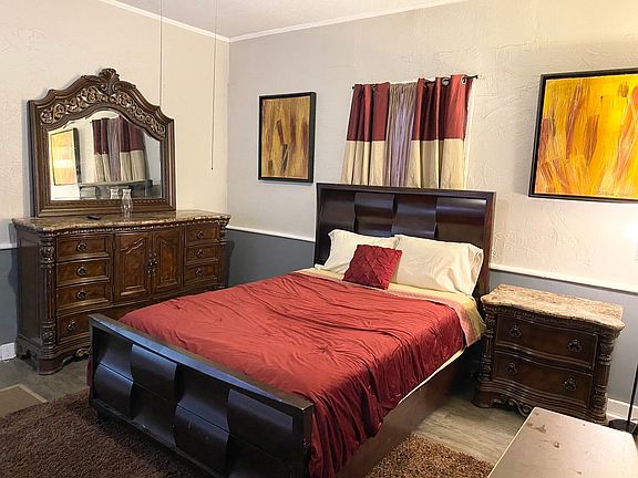 Welcome to your home away from home! This fully furnished 2-bedroom, 1-bathroom home offers comfort and convenience for short-term stays. Ideal for traveling professionals, relocations, or flexible housing needs, it's move-in ready with all the essentials. Inside, enjoy a spacious open-concept primary bedroom and a cozy second bedroom, perfect for guests or a home office. The inviting living room provides a relaxing atmosphere, while the fully equipped kitchen makes meal prep effortless. Modern amenities include a stackable washer and dryer, high-speed internet, lawn care, pest control, and home security services. The home is also stocked with essential cleaning supplies for your convenience. Step outside to a spacious yard and a charming front porch, perfect for unwinding. Located near the Medical District, Downtown Augusta, Lake Olmstead Park, Augusta National Golf Club, restaurants, and shopping, everything you need is just minutes away. Perfect for traveling professionals and short-term renters, this home offers flexible month-to-month leasing. Secure your stay today!