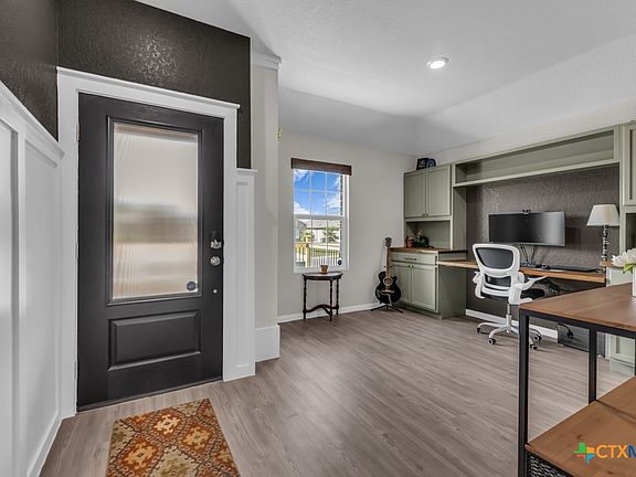 Tucked away on a quiet street in the highly desirable Voss Farms community, this stunning single-story home offers a rare blend of charm, character, and thoughtful design. From the moment you arrive, you’ll be captivated by the inviting curb appeal and clear pride of ownership. Unlike standard tract homes, this property features custom touches and built-in details throughout, creating a warm and distinctive living experience. Inside, an open-concept floor plan is complemented by spectacular finishes and upgrades that elevate the space. A flexible front room easily adapts to your needs—whether you envision it as a home office, formal dining room, or an additional living area. The spacious primary suite serves as a relaxing retreat, complete with a large walk-in closet and an en-suite bathroom featuring dual vanities and a walk-in shower. Two additional bedrooms offer generous space and share a well-appointed full bath. Step outside to your own private backyard oasis, where an extended patio, flagstone seating area, and raised garden beds invite you to relax, entertain, or cultivate your favorite herbs and vegetables. Living in Voss Farms means access to top-tier community amenities, including two swimming pools, a clubhouse, playground, walking trails, and year-round neighborhood events. With shopping, dining, and entertainment just minutes away in New Braunfels, this home delivers the perfect mix of style, comfort, and convenience.