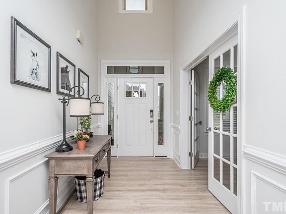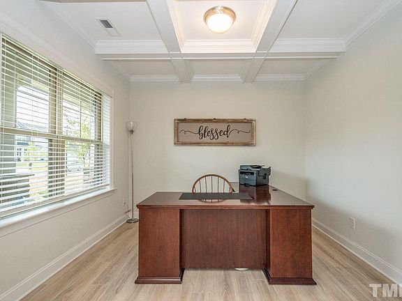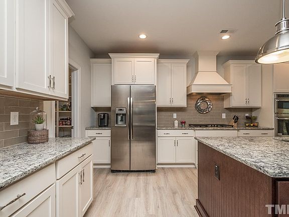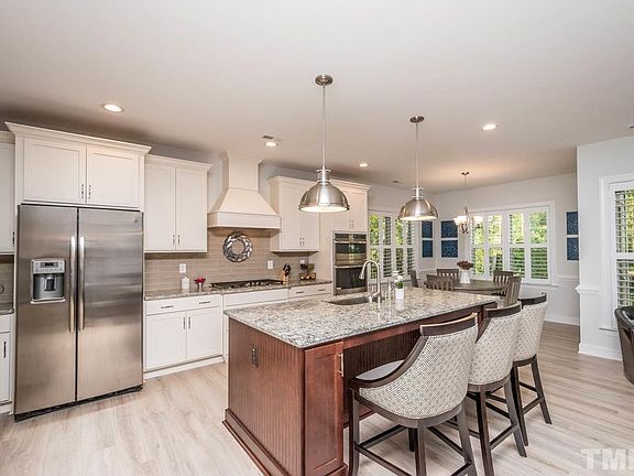 Stunning nearly new home with 2 large master suites, 1st floor office & tons of upgrades! Premium lot with no neighbor to one side overlooking serene wooded area! Huge gourmet kitchen w/walk-in pantry, gas cooktop, large island & built-in microwave. Large bonus (could be 5th BR) w/partially finished & conditioned walk-in storage! All laminate and tile flooring perfect for people w/allergies. Covered rear porch & fenced yard. Walking distance to community pool & minutes to tons of shopping & restaurants.