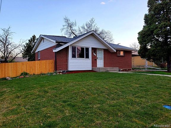Your lucky day! Back on Market due to buyers financing. Priced to sell Fast! This charming brick home has a completely updated kitchen with new appliances and new kitchen tile floors. The main level with hardwood flooring has 2 bedrooms, a full bath and an open living room with a big window that faces North. A new concrete driveway has just been installed that updates and enhances the front exterior. The finished basement with brand new carpeting is perfect for family or guests with 2 additional bedrooms, a ¾ bath and family room. The backyard has a ton of potential to create your own oasis. Located close to I-25 and other major roads for quick access to getting places. Currently pending! Back up offers accepted!!