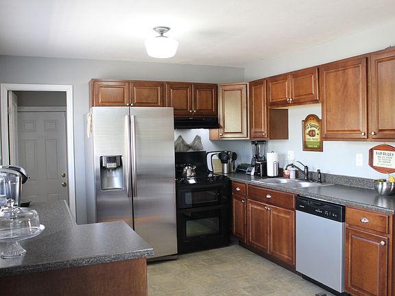 This is a beautiful brick front home. It has 5 bedrooms, on a quiet street right, and in the center of town. Nice layout, with 3 bedrooms on the main level! Nicely updated kitchen, with newer appliances, and original wood floors throughout the main floor. Updated bathrooms, both upstairs and downstairs. Huge backyard with a firepit area, that will stay. Just imagine the things you can do with this huge yard!! With two bedrooms in the basements and a large family room, it's enough for a whole other family, roommates, or those older teenagers! Large garage with built-in shelving, that will stay and garage door opener. New roof in June 2019 w/transferable warranty.