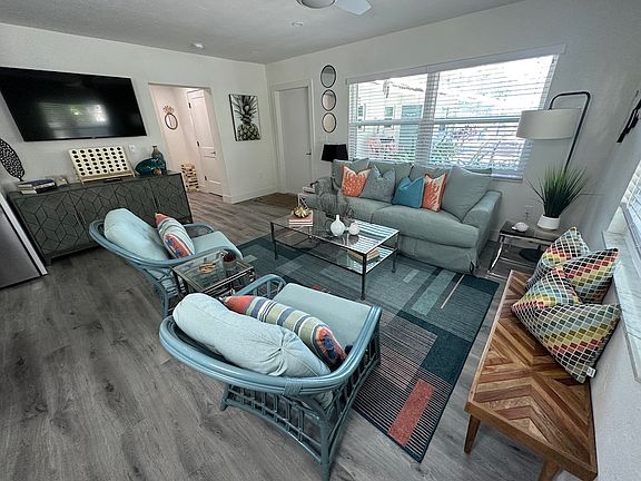 New & modern 3B2B bungalow which is beautifully decorated. (If you have a larger party ~ look at Kumquat bungalow, which has option of adjoining the two spaces!) Visit the courtyard to lounge, eat al fresco or enjoy a cookout. We are located in downtown Sarasota within walking distance of many restaurants, cafes, bakeries, night life, art galleries & more! View a sunset at Marina Jack, visit one of our world famous beaches ~ only a short distance. Ideally located inTowles Court Artist colony. Lease 6 months to 12 months. Tenant pays for electric and internet. Unit is fully furnished. Smaller dogs allowed with an additional deposit. No cats. No smoking on the premises.