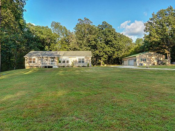 Don't miss this one! A fantastic, updated walkout basement home with shop on 5 secluded acres offering privacy and easy access to Springfield. Only 7 miles from Division and 65 in Strafford Schools. The home is set back from the road and isn't visible until you wind down the driveway. The open concept great room features large windows providing a bright and welcoming feeling while the kitchen has an island and stainless steel appliances. The main floor boasts new luxury vinyl tile throughout. Don't miss the deck off of the dining area, perfect for your morning coffee and wildlife viewing. The oversized master bedroom with ensuite boasts a large tile shower, dual vanities and his & hers closets. With a split bedroom floor plan, you will also find 2 more bedrooms, a full bath and laundry room upstairs. The basement has a large second living area with brand new carpet and a full bath. It walks out to a large patio and the beautiful, wooded backyard. The 50X30 shop with concrete floors, is insulated, plumbed and has 220 electric service. There is also a small concrete block outbuilding with electric. The current owner has made many updates to the home and put a lot of sweat equity into the shop and property. It is in great shape, even the fire pit is ready to welcome your family and friends.