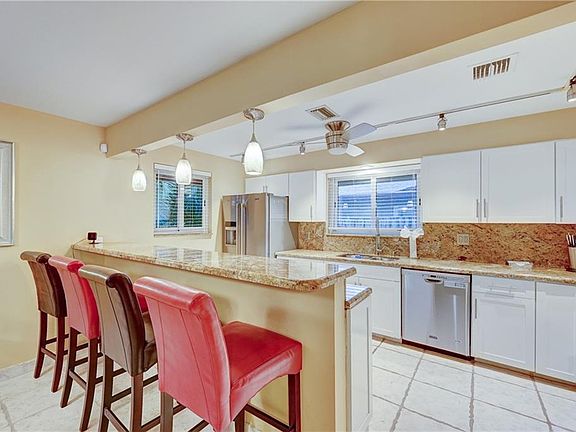 Open kitchen with granite counters, stainless steel appliances, updated white cabinetry and tile throughout tucked away on a cul-de-sac in sought after Royal Palm Lake Estates. Beautiful water views, deck overlooking the lake, all impact windows, Florida room perfect for entertaining. 2 car garage with a professionally landscaped yard with native Florida landscaping. Great neighborhood close to parks, entertainment and beaches.