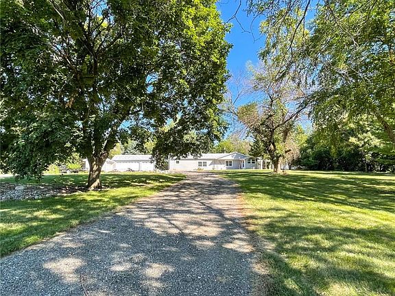 Secluded property without leaving town! Mature trees on the north and east side of the property and an ample yard both in the front and back with a large concrete patio to enjoy with friends and family. You'll appreciate the new roof, gutters and vinyl siding placed on the house and on the garages. There is a three car and one car garage for your toys or work vehicles. Inside you'll be pleased to find an updated kitchen, updated appliances, new flooring, paint, trim, light fixtures and a new furnace in 2018. You'll have 3 ample bedrooms and a large kitchen and dining room for when you have guests. Home is on a slab however with many features you'll absolutely love. Schedule a showing today!
