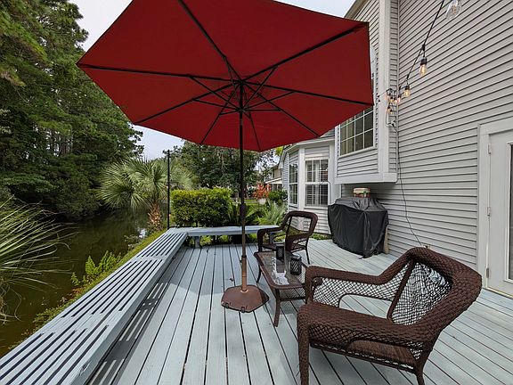 If you are looking to be in one of the best locations in Mt. Pleasant, if not THE best location, look no further. This very well-maintained, waterfront home is just across the connector from the Isle of Palms, less than 10 minutes away from the beach, less than 20 minutes away from downtown Charleston, and within walking or biking distance to amazing restaurants, cafes, bars, shops, fitness studios, the Towne Centre, Target, Trader Joe's, and a wonderful movie theater! I-526 is also just down the road for easy access out of town. The property backs up to a pond and surrounding woods, offering excellent privacy. You can enjoy relaxing times on the back deck and even fish from it. The neighborhood is zoned for top-notch schools, including Lucy Beckham High School, and there is a stoplight at the entrance of the neighborhood, which makes coming and going much safer. A Tesla charger has been installed in the garage. The home is also available furnished for $5,000/month. Home is available mid-October for long term rent and possibly less than a year. No smoking allowed. Available around mid-October 2025 for long term rent and possibly less than a year.