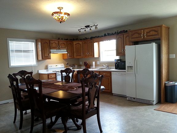 Move in ready with plenty of room to grow! An open floor plan in the kitchen and living area with tile flooring in the kitchen and laminate flooring in the living area that continues throughout the home. Vaulted ceiling in the living room! 3 bedrooms, 2 bathrooms, that includes a master bath. Back Porch with private back yard and the front porch is perfect for your rocking chairs! The full basement is unfinished but could be easily finished to add additional living space. There are double garage doors in the basement. A spacious yard in the front and the back, perfect for a pool or a garden! Close to town, but outside of the city limits!