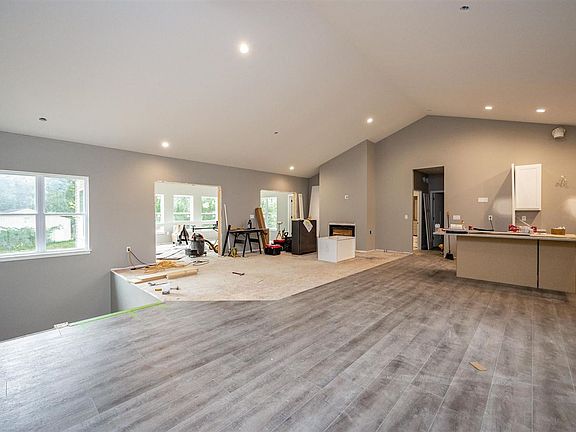 Rare in-town acreage! Over 4 acres with a custom new construction home. This ranch style open floor plan features over 2200 SQFT on the main floor. The master suite features bath with tile shower, linen and walk-in closets. Great room has a gas fireplace with stone surround, vaulted ceilings and built-in cabinets. Enjoy your morning coffee or evening wine in the huge sunroom with views of the wooded lot. There is over 1,300 SQFT of unfinished lower level space ready for your touches to complete 2 additional bedrooms, large family or recreation room with two sliding doors to the concrete patio and backyard. Lower level bathroom will be finished. Also on the property are a 3-car detached garage built in 2002 and a large pole barn built in 2006. The property is zoned rural residential so there are oodles of possibilities, including acreage to allow up to three horses!.