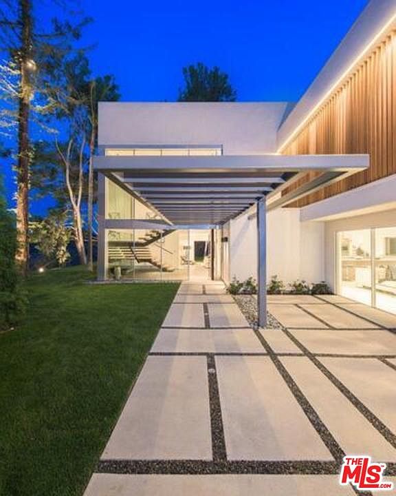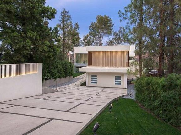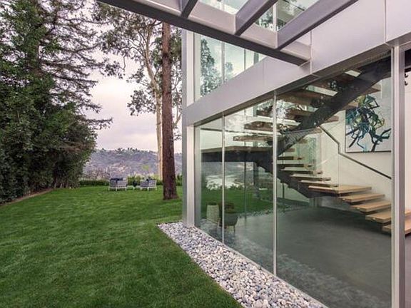 Satisfy your Lake Como-type cravings in this standalone gated mega star retreat compound in a low-density neighborhood that provides space & comfort whether you're staying home or entertaining. Hugging the shores of Stone Canyon Reservoir, with your own hiking trail (2 acres plus)this 5 bedroom, 8 bath modern architectural was designed to bring the outside in while masterfully interacting with its native surroundings. Enter beyond the gates where a floating cantilevered-lit 2nd floor illuminates both the home and dramatic hillside perch enveloped by trees and views of the lake below. A floating staircase and skylight greets you with panoramic views at every turn. The seamless glass walls in the step-down living room maximize indoor/outdoor living. A striking onyx fireplace separates the formal dining room and leads into the impressive gourmet kitchen, with a picturesque servery window revealing entertainment decks, cabana, and pool. Upstairs, each bedroom has a walk-out balcony.