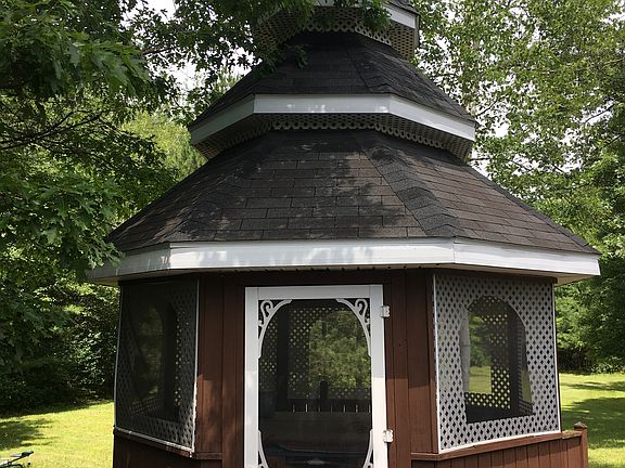 If you're looking for a retreat to hunt, fish and relax, this 3 bedroom, 2 bath home is perfect for you! You can roam the trails throughout the 9+ wooded acres, fish in the stocked pond or relax in the hot tub within the screened-in gazebo. Additional features include: - 3 car heated garage - Wood burning fireplace in the formal living room - Hardwood flooring and oak trim throughout - Custom hardwood cabinets in kitchen and laundry room with soft-close drawers - Butcher block island - Large master suite with walk-in closet, double vanity, jacuzzi tub, separate shower and abundant storage - Large back deck with covered gazebo - Matching "boat house" with overhead door and opener