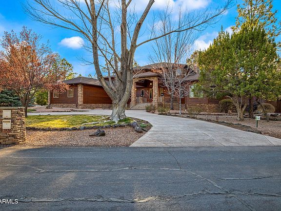 A truly exceptional offering, this distinguished residence in the prestigious Sierra Pines community presents a rare blend of architectural elegance, luxurious comfort, and thoughtful design. Uniquely appointed with three primary suites on the main level, this expansive estate redefines versatility and convenience for multigenerational living or elevated guest accommodations. Upon arrival, the stately circular driveway and grand staircase create a commanding first impression, leading to an exquisite foyer adorned with hand-finished Amish wood flooring and crowned by a magnificent rustic beam chandelier, masterful union of craftsmanship and character. Designed to impress, the home offers both grandeur and function. The oversized three-car garage is complemented by a custom two-bay garage, catering effortlessly to collectors, outdoor enthusiasts, or those requiring exceptional storage.