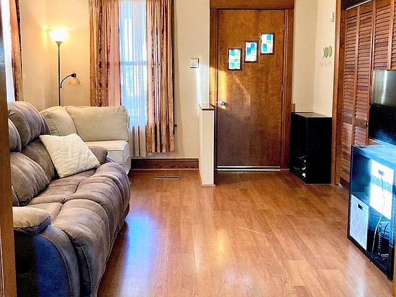 Charming home in a great neighborhood! New roof in 2020. It has a fantastic THREE CAR GARAGE with insulated garage doors and alley access. The front of the house has a spacious porch, in back you'll find large deck overlooking a nice sized fenced-in yard. Inside you'll find three bedrooms with a possible fourth, two full bathrooms--one is huge! Unfinished basement has lots of space for crafting, storage, or play area. Basketball hoop in driveway stays. Pre-inspected and sold as reported.