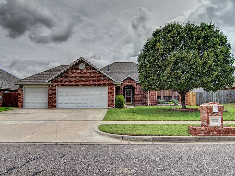 STORM SHELTER- This spacious home features 3 beds (large closets), 2 baths, a study, fireplace, porcelain tile floors, new carpet, ceiling fans, *storm shelter* , 3 car garage, and all stainless steel kitchen appliances are included. The home is located in the coveted Oak Ridge Community and is within walking distance of Oak Ridge Elementary and South-Moore High School. There are washer and dryer connections, central heat and air, fenced backyard, surround sound connections, security system available and weekly lawn care is included. Rent: $1595.00, Deposit: $1595.00, Pet Fee: call to inquire. Tenants are responsible for all utilities. Non-smoking...Military discount available! Within minutes of Warren Theater, Walmart, shopping and restaurants. For additional information or to arrange an appointment to tour the home, please call or text Jeff/ Jennifer at (405)618-8766.
