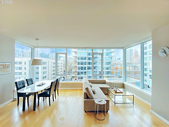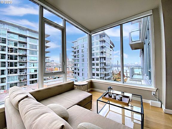 Lux living at the waterfront. Rare 1 BD + den + 2 parking spots + storage. 180 view of the river & west hills fr living area w/ remote controlled blinds. See Moda fireworks from the window. Large wrap-around balcony w/ tranquil hill and river views. Wood floors, wool carpet, walnut cabinets, quartz counters, Bosch appliances. Walk to parks, beaches, kayaking, marina, cafes, food, shops, markets, Keller. Mins to HWY.