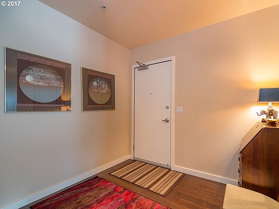 River view, 1500 sq. ft. SE Corner unit with two bedrooms, two bathrooms and a generous wrap-around deck. Willamette River and Marina Views from the living room. Unit includes gas fireplace, hardwoods, chefs kitchen with high end appliances and granite counter tops, extra storage and one deeded secure parking space. Streetcar is one block away. You are close to Keller Auditorium, restaurants, hotels and the Riverplace Esplanade.