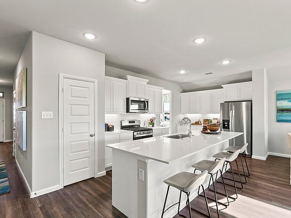 MLS# 20963396 - Built by Trophy Signature Homes - Ready Now! ~ Creatively designed to accommodate the needs of everyone, the Heisman is a unique plan. The main living area is expansive, encompassing the island kitchen, dining area and family room. Invite the football team for an after-party or snuggle up for a movie as the room easily adapts to your needs. Outstanding storage capacity is another feature, with a walk-in pantry, large utility room, walk-in closet in the primary suite and extra space in the garage.