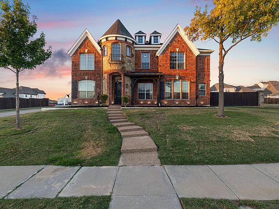 Welcome to your dream home, a meticulously maintained Grand Home nestled on a spacious corner lot in the highly sought-after Lone Star Ranch community, part of the acclaimed Frisco ISD! This stunning south-facing residence features 5 bedrooms, 4 bathrooms, 2 dining rooms, 2 living areas, a game room, a media room, and a bonus room! Step inside to soaring vaulted ceilings and huge windows that flood the home with natural light! The main level boasts a formal living room, a dining room, and a dramatic spiral staircase. The oversized kitchen is perfect for culinary enthusiasts, equipped with a brand-new gas stove and dishwasher, stainless steel vent hood. Retreat to the luxurious primary suite, featuring a spa-like ensuite bath with a newly remodeled shower, along with a second full bathroom and a versatile bonus room. Upstairs, enjoy a spacious loft-game room adorned with a stone accent wall and built-in bench, accompanied by a media room, 4 additional bedrooms, and 2 bathrooms. Step outside to your private outdoor oasis with a covered wraparound patio featuring ambient lighting and an inviting above-ground jacuzzi beneath a gazebo equipped with a mounted TV ideal for relaxation or entertaining! Outside, you will also find a 3-car garage, a generous 5-car driveway, and unique RV-boat access with electrical hookups. This home is part of a master-planned community offering resort-style amenities, including a clubhouse, gym, a stunning 3-tier pool, fishing ponds, walking trails, and volleyball & basketball courts, all situated within a family-friendly park. Don't miss the opportunity to make this beautifully upgraded home yours! New plantation shutters coming!