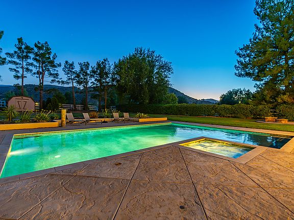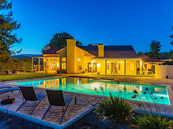 Discover Luxury Living in Scenic Acton! Welcome to your dream home! This exquisite single-story 4-bedroom, 3-bathroom pool home awaits you, complete with RV access and the ultimate in upscale living. Nestled on nearly an acre, you'll be captivated by the park-like front yard and stunning curb appeal. Step inside through elegant double doors into an open floorplan that radiates warmth and sophistication. The spacious living room and formal dining area boast soaring vaulted ceilings, a cozy fireplace, and an abundance of natural light from oversized windows that frame breathtaking views of the surrounding hills. Adjoining the living area is a chef's kitchen designed for both functionality and style. Featuring stainless-steel appliances, a gas cooktop, ample cabinetry, breakfast bar, and sleek granite countertops, this kitchen is sure to impress. This is open to the informal dining area and a second living room with its own fireplace which create the perfect atmosphere for entertaining or relaxing, all while overlooking your private backyard paradise. Retreat to the primary suite, where vaulted ceilings, your own fireplace, create an inviting atmosphere. The attached bathroom offers a dual sink vanity, a separate soaking tub, a walk-in shower, and an expansive walk-in closet. Each of the three generously sized secondary bedrooms features large closets and share an updated bathroom complete with dual vanities and a stunning tiled walk-in shower. An additional updated bath conveniently located off the living area adds to the home's appeal. Outside, you'll find an entertainer's haven! With multiple covered patios, a sparkling in-ground pool and spa featuring a delightful Baja shelf, and a paver patio complete with a firepit, gatherings will be effortless. Lush landscaping and plenty of room for pets, toys, and more ensure that this outdoor space meets all your recreational needs. A handy shed provides extra storage, while a secluded side patio offers a tranquil spot to unwind, enjoy your morning coffee, or soak in the beauty of vibrant sunrises and sunsets. Completing this perfect home is a spacious 3-car garage with a workshop area, coupled with paved RV access and hookupsideal for adventure enthusiasts! This home offers a unique opportunity for those looking to enjoy the comforts of a well-designed living space in a desirable area. Don't miss the chance to embrace a lifestyle of luxury and comfort.
