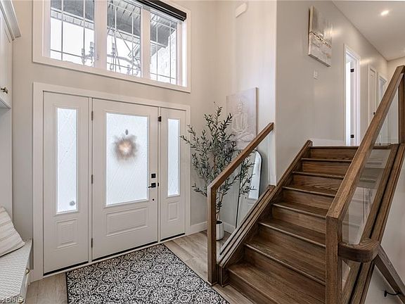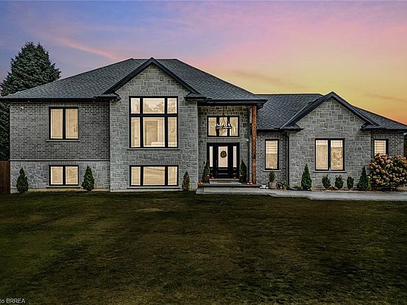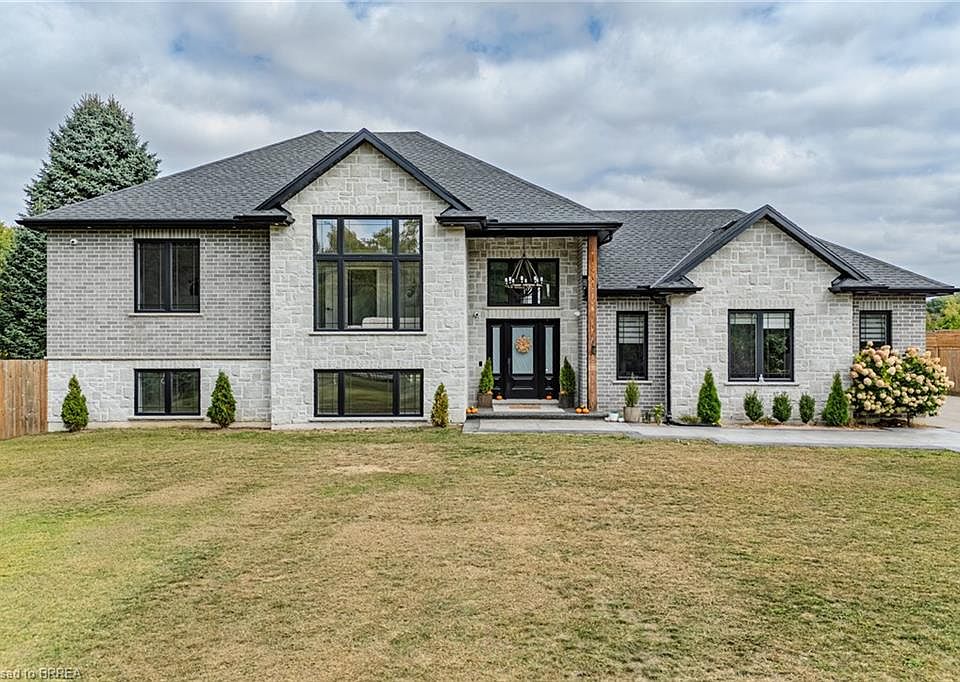 Welcome to this exceptional Simcoe home, set on a rare one-acre fully fenced lot offering privacy, convenience, and modern luxury. Just 14 minutes from Turkey Point Beach, 8 minutes to Delhi, and 10–12 minutes to Simcoe, the property is also steps from excellent schools—St. Michael’s Walsh Elementary and Walsh Public across the street, plus Holy Trinity High School in Simcoe. With a gated entrance, long asphalt driveway, heated garage, and parking for 15+ vehicles, this home is as practical as it is stunning. Inside, you’ll find 4+4 bedrooms and 4 bathrooms, including a fully finished walk-up basement with a complete in-law suite. The elegant interior showcases a modern oak staircase with glass railing, an open-concept living space with a glass fireplace and custom mantle, quartz countertops, and a custom coffee bar in the kitchen. Upgrades include pot lights throughout, crown molding with LED lighting in the family room, under-cabinet lighting, and a beautifully enhanced front entrance with decorative inserts. All bathrooms feature quartz, upgraded mirrors, and stylish fixtures. The lower level offers versatile living with vinyl flooring, radiant floor heating, plumbing upgrades, and a boiler water heater system. Outdoors, enjoy a stamped concrete entrance and patio, 8’ backyard fencing with farm fencing for added security, exterior pot lights, cameras, a Muskoka room on the deck, enclosed under-deck storage, and a garden shed. A barbecue gas line makes entertaining easy. Move-in ready and loaded with thoughtful upgrades, this home combines indoor comfort, outdoor living, and a rare location—perfect for families seeking both space and convenience.