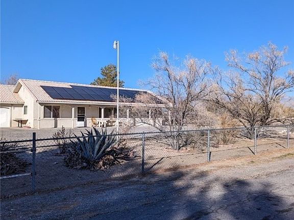 2 Bed/2 Bath, 1250 SF site built home on 1 acre. Seller Contribution will be considered. Fully fenced with 2 wide drive-thru gates w/circle drive & desert landscaping. 50x12 covered back patio w/views of Mount Charleston. Front Covered Porch 50x5 & nice two car attached-finished 24x26 garage. Ext walls have 2x6 framing & tinted windows, sliding door to back patio from dining nook off kitchen. Large primary BR w/walk-in closet, w/full tub & shower combination. $40K Solar on home to be paid off w/full price offer only. Home is priced to sell. Property has several RV hook-ups on the property. Bathrooms off both bedrooms which allows for two masters & 36" Interior doors with no hallways. No steps, so handicap accessibility is a plus. Tons of potential on an acre with great mountain views. A lot of potential for a site built home on an acre. Compare this to many of the manufactured homes on the market today and buy site built instead. Come home to 1920 Horn in Pahrump Nevada.