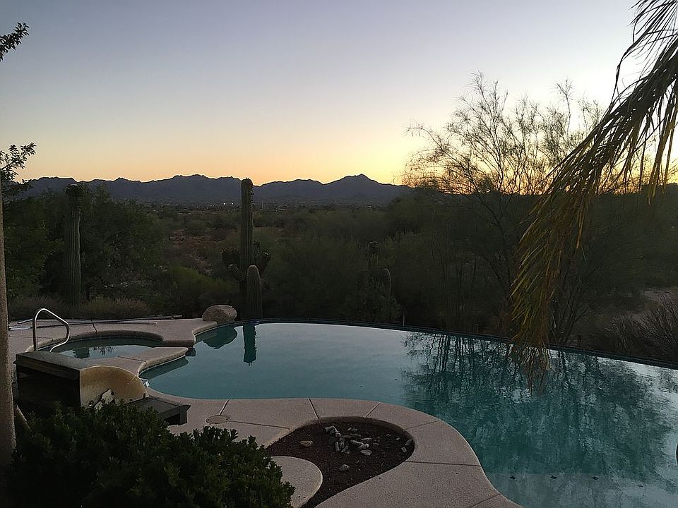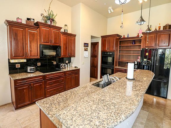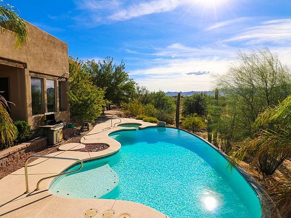 Large one of a kind custom home on a 3.73 acre hilltop Lot with beautiful mountain and city views surrounded by large mature landscaping. This home was built in 2005 with high ceilings, Knotty Alder doors and Travertine tile. Included is a great floorplan, 3 car garage, lots of storage, negative edge pool, a spa with views and a two bedroom, two bathroom guest house. The open kitchen has Knotty Alder cabinets, a granite counter, and a large island. In addition to the guest house there is also a guest quarters on the opposite end of main house. This home is a must see in a great private location with close proximity to shopping, entertainment, and dinning.