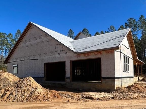 Beautiful Custom New Construction Home on 5 Acres in Buffalo Creek! This property is being sold AS-IS! Enjoy the privacy and tranquility of this country property in Pace. This is a fantastic opportunity to make it your own! This 3 or 4 Bedroom, 3 Full Bath, 2,507 square foot split floorplan provides grand open spaces for entertaining and large windows for tons of light. Living Room and Kitchen boast a vaulted ceiling and a spectacular fireplace. If outdoor space is important to you, then take a look at the huge porch areas on this home! Large Bedrooms all with walk-in closets. Extra large double car garage. Office could be a fourth bedroom. Home is framed with rough-in plumbing done. Plans are available for new owner. Well and Septic have been installed. Temp Electric Pole is present. There is also a completed 30x40 Work Shop with storage loft near the house and a Mancave/Cabin with a loft near the creek in the woods!