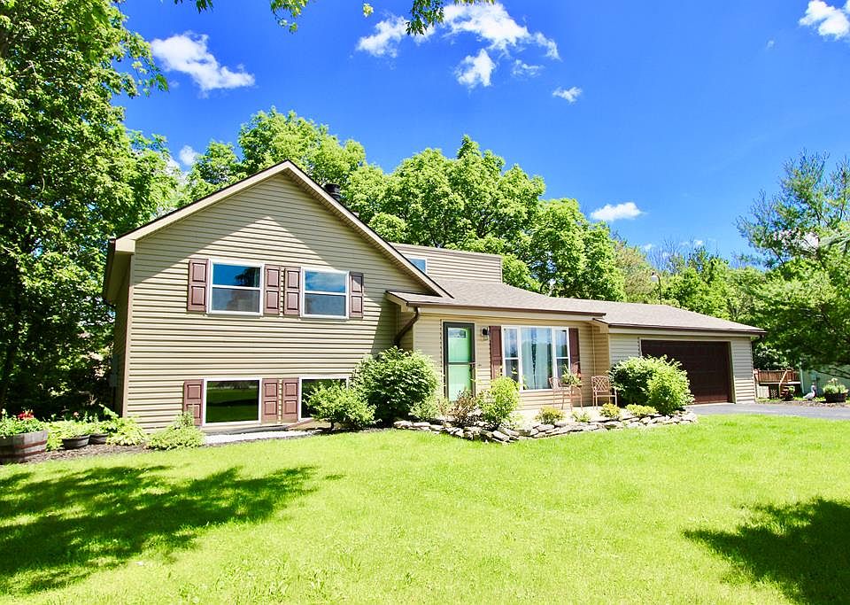 You will fall in love with the open floor plan & high ceiling. Remodeled all 3 bathrooms. Bedrooms have been refreshed too. Kitchen has new flooring, backsplash & painted cabinets. Woodburning fireplace in family room. Imagine relaxing on your large deck & enjoying the views of Mother Nature. New large deck overlooking backyard with view of the creek. Sunroom has new metal roof and has been refreshed with newer outdoor carpet. Concrete front front porch replaced old deck. Newer dimensional shingled roof, windows, gutters & vinyl siding in 2013. This home has 4 levels of living space, including an unfinished basement level with poured concrete walls. Heatpump was new in 2014. All new electric throughout the home including panel. DelCo water so low water bills. Don't miss out on this one!!
