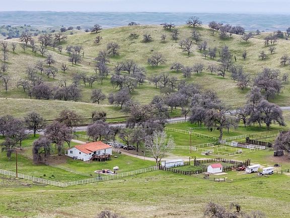 Magnificent views from all points of this beautiful 104 Acre ranch. Rolling hills, oak studded trees, fenced, cross-fenced, electric gate and great water! Perfect for working cattle, horse enthusiast, or enjoy a leisure peaceful retreat. The property boasts green pastures, sorting pen, large riding arena, cow/calf chutes, multiple pens, w/piped fencing . This Ranch style designed home w/front porch welcomes you as you step inside! Rustic wood floors and walls & cozy fireplace. The updated kitchen has stainless steel appliances & granite countertops with an open concept that looks out to the lush green mountains. Approx. 1,900 sqft, 3 bedrooms and 2 updated bathrooms. The sun porch/office offers views of the rolling hillsides. Indoor laundry/utility room and pantry area. Huge patio deck to enjoy relaxing, Bricked BBQ area, deep pit, 2 sheds, 1 with RV electrical & lights, old original corrals still in place, make this one of the mountains ready to buy ranches.