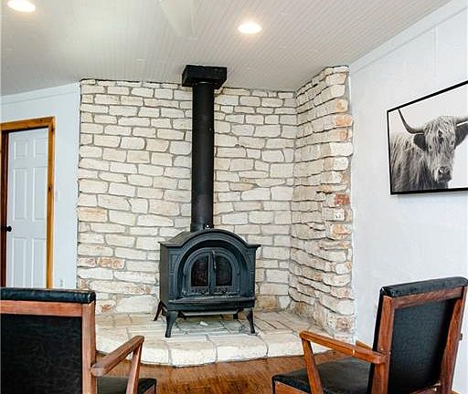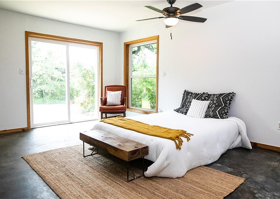 Country but close in 5 acre wooded retreat along pond. 30k in renovations Spring 2019. Complete bath remodels w/ clay backsplash. New windows, doors, interior & exterior paint, hardware, plumbing, toilets, tile & landscaping. Hard flooring throughout w/ wood ceiling in living/dining. Large Master suite w/ view of pond. Bonus room for office, hobbies, or guest space. Adj Barn/workshop frame perfect for RV parking or outdoor projects. Texas wildflowers galore. Lot suited for additional buildings. ATX ETJ.