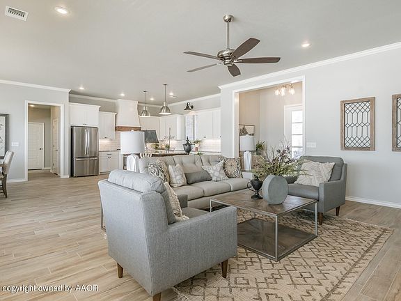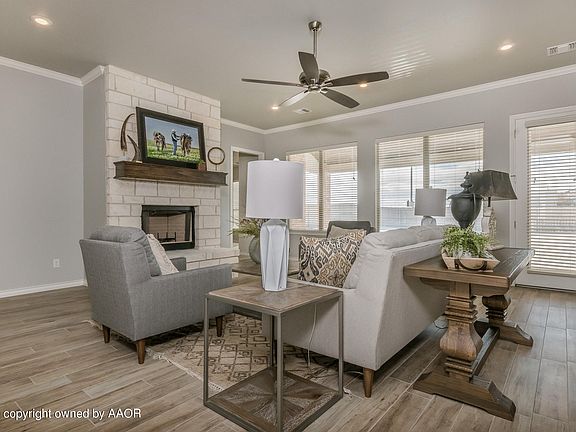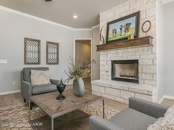 Beautiful new construction in Bushland's Legacy Ranch. Modern open concept featuring a stunning farmhouse design. 5 bedrooms, 3 bathrooms all on 1 acre. Entering the bright and airy entry you are immediately drawn to the stone fireplace and the wall of windows overlooking the large covered patio. Wood look tile through living/kitchen/dining area, tons of counter space and custom made cabinetry and picture window above the sink. Isolated master bedroom, en suite bath and huge walk in closet. Bedrooms 2 and 3 are nice sized and share a jack n jill bath. Bedroom 5 is large and could easily be a second living area.