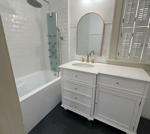 Luxury Bathroom Enjoy a spa-like experience with a shower tower.
