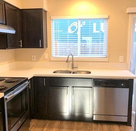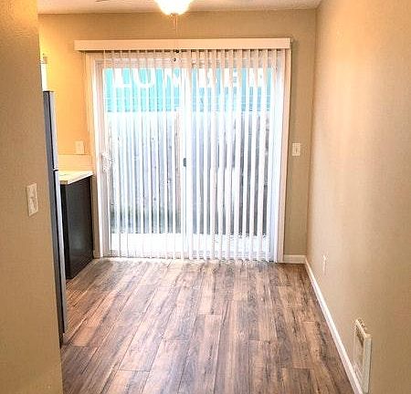 Step into this freshly remodeled & upgraded townhome! This townhome features new wood grain vinyl on the main floor, designer cabinetry, new windows & doors throughout and to top it off: Newer washer and dryer sets included for your use. As you enter the living room you will immediately notice all the natural light that comes in from the large, Low E windows. Wonderful light and bright accents, trim and ample storage closet space. Off the living room is the dining room with access to small fenced yard. Kitchen includes stainless steel appliances to include range, fridge, dishwasher and garbage disposal. Dark finish cabinets with accented light counter tops make this kitchen a must have! Finishing off the main floor is the half bath conveniently located right off the living room. Going upstairs are both bedrooms and full bathroom. Bathroom includes stacking washer and dryer. Master bedroom has its very own balcony! Lots of closet space for both bedrooms. 2 off-street parking spaces provided. Monthly utility charge of $75 to cover water, sewer and garbage. NO Pets Don't miss this opportunity to be less than 8 miles to Downtown Portland, OHSU & PSU! Just a few miles from the new MAX line and easy freeway access. A quick block off McLoughlin Blvd. River access, Olson & Glen Echo Wetlands & Clackamette Park at your fingertips! Please drive by the property, then call our leasing office to schedule a time to view the interior. 12 month lease. This property is located on River Road. Nearest cross street is Glen Echo Ave. These 5 townhomes are nestled behind a blue bungalow with white picket fence. Pictures may not be of exact unit Flat monthly fee of 75.00 for water, sewer, garbage