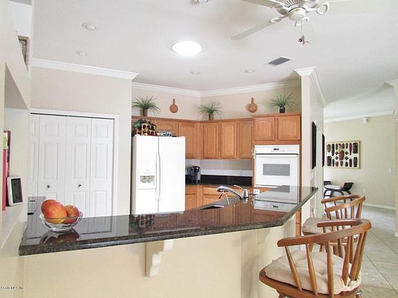Beautiful Move-in Ready, 3 BR + Office, 2 BA, 3 Car Garage Home with Access to Spring Fed, Crystal Clear Rainbow River Thru Private Resident's Park. This Unique Home offers Crown Molding, Volume Ceilings, Wood Burning Fireplace, Plantation Shutters, Granite Counter Tops, Cook Top Stove, Built-In Oven. Luxurious Master Suite Has Its Own Enclosed Lanai W/ A/C and Regal En Suite Bath. Lavish Guest Quarters, Full Guest Bath Provides Pool Access For Ease In Entertaining! Expansive Lanai and Solar Heated Salt Water Pool Nestled In Private Greenery Off Cul-de-Sac For Peaceful Tranquility!