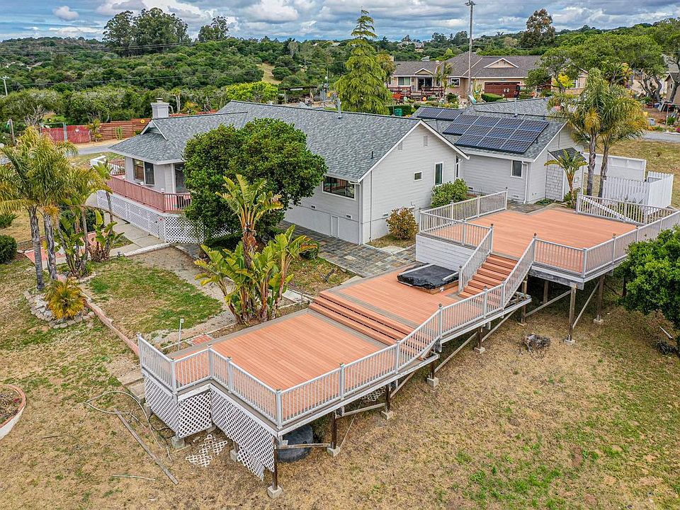 This extraordinary property is situated in the desirable Holly Hills community & boasts stunning features & breathtaking views. With 3 beds/3ba, this home offers +/- 2,568 sf of living space on an expansive 6.56-acre lot, providing ample room for family & guests. The open floor plan welcomes you w/ magnificent, vaulted ceilings, & the family room includes a pellet-burning stove fireplace w/ a bay view. Upgrades include interior & exterior paint, new flooring, new plumbing in kitchen & bathrooms, new roof, solar panels, & more. The primary bedroom suite has a large office/workout room filled w/ natural light. Multiple trek decks provide the perfect place to unwind & enjoy the remarkable views, while the patio area is ideal for hosting gatherings or enjoying a peaceful lifestyle w/ beautiful sunsets over the bay. The property includes a 2-car garage & extra exterior space & offers easy access to Silicon Valley (approximately 45+ minutes) & Monterey Peninsula (approximately 30+ minutes).