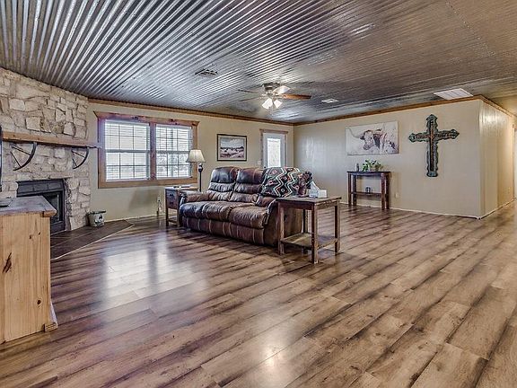 Welcome home to this beautiful Ranch Style home which sits on 26 acres & features a wrap around porch with wonderful views. The open concept layout of the main room provides plenty of room for family gatherings in addition to the 4 bedrooms with walk-in closets, 2 full bathrooms, a large mudroom, plus an office. The country design in the home is one of a kind with copper sinks, galvanized metal ceilings, and cedar trim. The property has everything you need for livestock, including a pond, pipe fence, the property is cross fenced, a 36x40 Horse barn with a 13x10 tack room with concrete & electric, 30x12 loafing shed, 12x12 loafing shed, & 8x8 Stud Pen with wooden floor. There a is a 30x36 Shop with concrete slab, electric, & water and another 30x24 shop with electric. Too much to list on this one of a kind property.