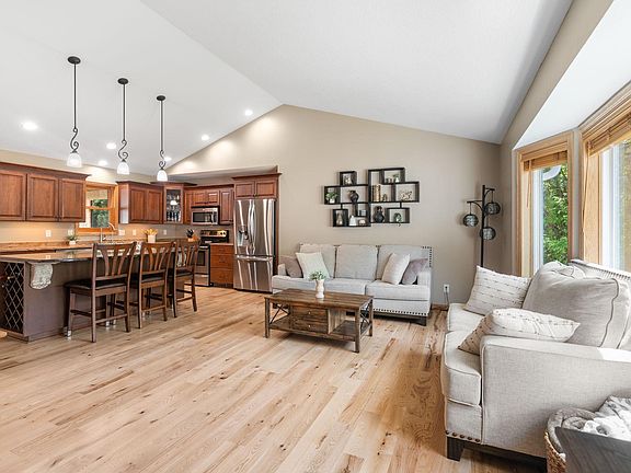 Gorgeous four-level split in the heart of Elk River! This well-maintained home features an open-concept main level with resurfaced hardwood floors, cherry cabinets, granite countertops, and a spacious center island, perfect for everyday living and entertaining. The fully updated lower-level family room (2020) offers a cozy gas fireplace and a built-in office area with bookshelves. Enjoy Minnesota seasons in the vaulted-ceiling three-season porch or relax in the fully fenced backyard with beautiful landscaping, colorful flowers, and a newer deck. The home also includes an insulated and heated two-car garage, basement workshop, and ample storage with a utility room shelving system. All new windows (2022) , furnace (2020), and air conditioner (2020). Conveniently located near major highways, shopping, restaurants, and downtown Elk River!