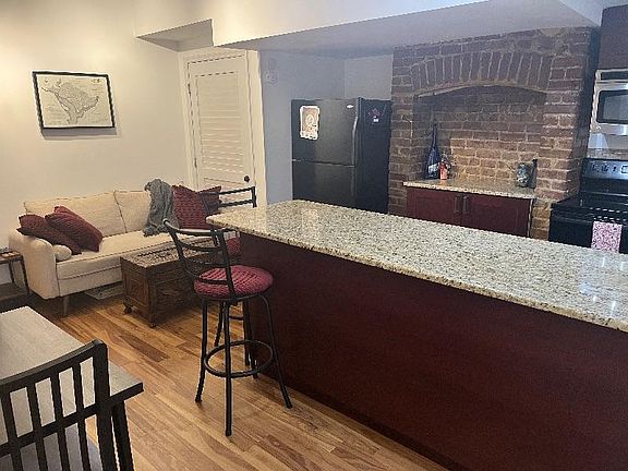 Bright and cheery 1BR/1BA private apartment in a Renovated 2-unit Queen Anne-style 18th-cenry Victorian rowhouse in highly sought-after Dupont Circle neighborhood. Easy walk to restaurants and shops. 30-minute walk to most NW DC locations. Fully furnished and well-equipped, but can remove unneeded items for long-term renter. Historic charm with modern convenience. BRIGHT & PRIVATE: 9-foot ceilings, with two walls of large windows, and lots of light throughout. Apartment occupies whole level and has its own front and back entrances, providing tenant with lots of privacy. Quiet, tree-lined street in the heart of prime DC neighborhoods. CONVENIENT: Short walking distance to restaurants and entertainment in Dupont Circle, U Street, 14th Street, and Adams Morgan. Closest metros = Dupont (Red Line) or U Street (Green and Yellow Lines). Trader Joe's, Harris Teeter, Safeway, Whole Foods, and a plethora of restaurants and shops within a few minutes' walk. OUTDOOR SPACE: Front yard with brick patio and garden. Private back yard with new fence and patio, low-maintenance garden, high-end artificial lawn, and large gas BBQ grill. ENTRYWAY: Large with mahogany and glass front door, Italian tile, exposed brick, HUGE storage closets, and built-in shoe storage. BEDROOM: large with decorative tiled fireplace, 3 bay windows, ceiling fan, closets/storage, and lots of space. BATH: Newly tiled shower, new vanity and sink, ample storage, and light. KITCHEN/DINING/LIVING ROOM: spacious, open floor plan with dramatic floor-to-ceiling exposed brick fireplace. Entertainer's kitchen features large peninsula with granite counters, ample IKEA cabinets, Pergo floors, decorative fireplace with built-in bar and wine rack, glass-top stove, refrigerator with icemaker, new dishwasher, built-in microwave, and garbage disposal. NOTE - The space is an open concept floorplan, so there is NO SEPARATE LIVING ROOM, but there is space for a sofa and coffee table and separate space for small dining set and a large kitchen area with a huge peninsula for cooking and additional seating. If you have a large living room and dining room furniture, this isn't the place for you, but if you like cooking and entertaining, it's a dream. New in-unit W/D. Central A/C and heat. Eco-friendly furnace and tankless water heater. Cable TV, wireless Internet, and all utilities connected. $2995/month for rent, plus $175/month for all utilities, including Internet. Small, well-behaved pets, off-street parking, furnishings, and short-term rates negotiable. Furniture, off-street parking, short-term rates, and pets negotiable.