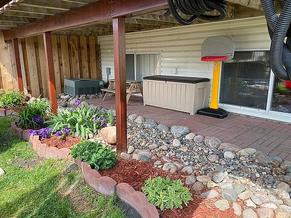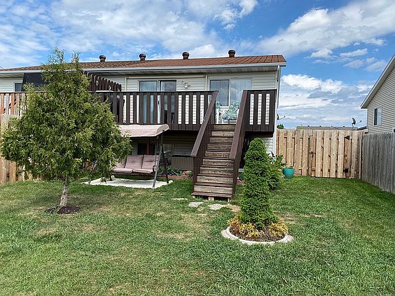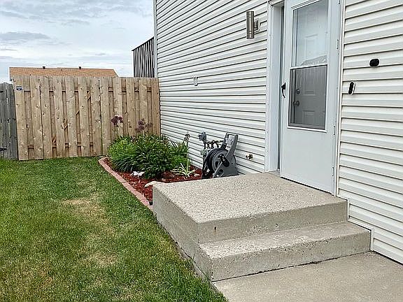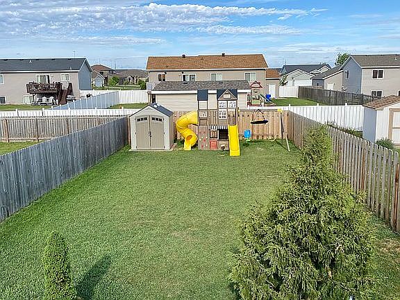 (More pictures coming soon) NOT LIKE ALL THE REST- This twin home has a large deck with a retractable awning. Beautiful yard that has a new shed plus the fence & swing set were put up just last year. Updated kitchen appliances, an electric fireplace, video doorbell, Nest thermostat and a new washer & dryer set. The attached double garage is sheet rocked and insulated with a wireless opener & shelving. In the West Fargo School district.