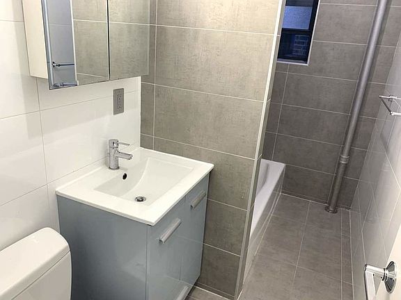 We have available a beautiful completely renovated and very light FOURTH FLOOR THREE ROOM APARTMENT in a six-story elevator building. The apartment has 9 FT. CEILINGS that include 4" SQUARE RECESSED CEILING LIGHTS AND POLISHED CHROME CEILING FIXTURES. The apartment includes a NEW DESIGNER KITCHEN WITH 42" HIGH WALL CABINETS and QUARTZ COUNTER TOPS WITH 13"x16" GLASS TILES BACKSPLASH as well as NEW STAINLESS STEEL APPLIANCES, including DISHWASHER, MICROWAVE, WASHING MACHINE/DRYER COMBO. The apartment also has newly installed 4 1/4" PARQUET FLOORS and a NEW DESIGNER PORCELAIN TILED BATHROOM (FLOOR TO CEILING) with NEW DESIGNER BATHROOM FIXTURES. Finally, the apartment also has all NEW 8 FOOT INTERIOR DOORS with POLISHED CHROME SINGLE LEVER HANDLES. THE MIDWOOD PROPERTY IS LOCATED LESS THAN 10 MINUTES WALK FROM THE QB TRAIN, JUST A MILE FROM PROSPECT PARK AND 3 MILES FROM BRIGHTON/MANHATTAN BEACH. THE MANAHATTAN EXPRESS BUS STOPS RIGHT ACROSS THE STREET FROM THE BUILDING AND MAJOR SHOPPING IS AVAILABLE ON NOSTRAND AVENUE, AVENUE J AND AVENUE M WHICH ARE ALL JUST MINUTES AWAY. BOTH BUILDING ARE TEN MINUTES WALK FROM THE Q TRAIN SUBWAY LINE AND LESS THAN A TWENTY MINUTE SUBWAY RIDE TO DONWTON MANHATTAN.
