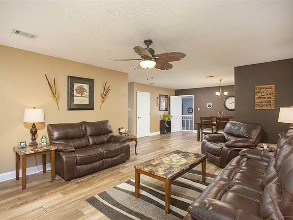 If you have been looking for a pool home, look no further! This home has Wood Look porcelain tile throughout. The kitchen is equipped with new solid surface countertops , stainless appliances and decorative glass tile backsplash. An expansive living / dining room is ideal for family dinners and entertaining guests. Kick back and relax in the family room with the brick wood burning fireplace . The large master bedroom boasts a walk in closet and over looks the beautiful backyard. This home has two additional bedrooms for overnight guests. Meander through the French doors onto the large covered patio. Lounge by the amazing in-ground pool on those hot summer days. Enjoy the privacy of mature oak trees on this 1 acre lot. A large chicken coop houses the owner's chickens. Negotiation for chickens to convey would be possible. Call today to schedule your private showing. Ask your agent for the attached feature sheet for more details on this home.