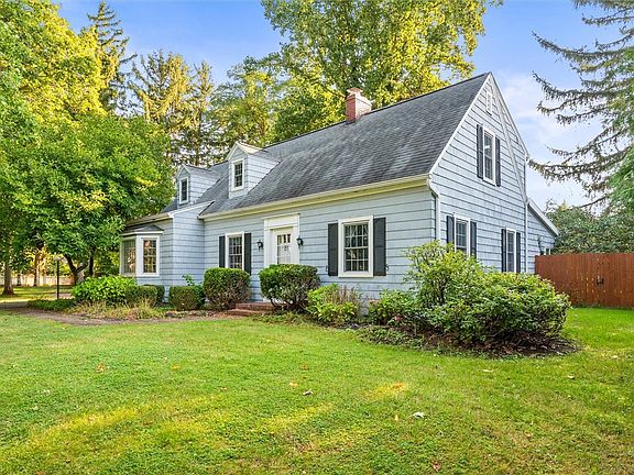 Welcome to this stunning Cape Cod-style home, featuring 4 spacious bedrooms and 2 fully renovated baths within 2,100 sq ft of living space. Set on a serene 1.3-acre lot, the property offers privacy and tranquility, with a fully fenced backyard, gardens, a large patio for entertaining, and a versatile outbuilding with electricity. The welcoming entryway features slate tile flooring, leading to an eat-in kitchen with a walk-in pantry, large island, and abundant cabinet space. Hardwood floors extend throughout, enhancing the home's warmth and character. Enjoy multiple living areas, including a formal dining room, a sunken family room with vaulted ceilings, and a cozy living room with a wood-burning stove. A charming office space provides an ideal work-from-home setting. Upstairs, find 4 bedrooms, including a primary bedroom with ample closet space. Additional features include a detached two-car garage and a lawn sprinkler system. This home beautifully blends Cape Cod charm with modern amenities, making it a perfect sanctuary. Square footage is incorrect in tax records. Correct sq ft is 2100 according to owner. Delayed negotiations until 10/8 at 4. Open house, Sun., 10/6 from 12-1:30