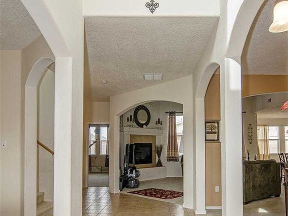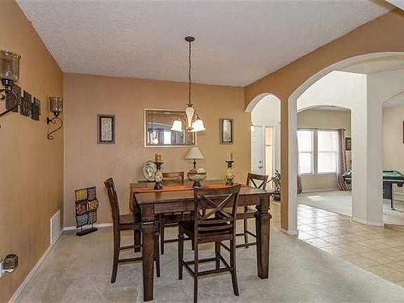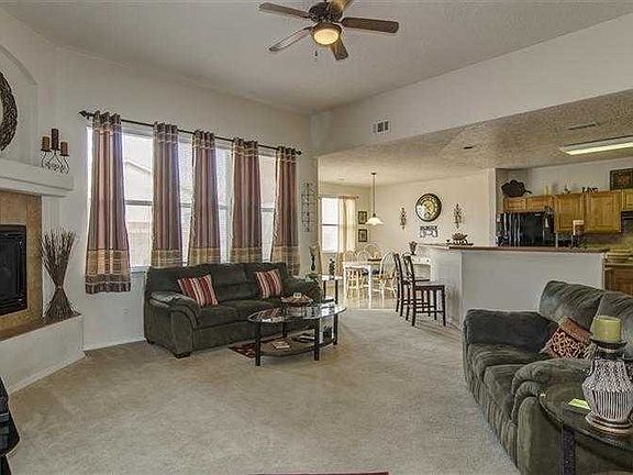 This Classy 4/5 bedroom home features Irresistible touches including Double Oven,Gas Cooktop,Solid Surface Counters,Island,Maple Cabinets. Large Family Room w/Gas log fireplace opens to kitchen/eating area. Separate Dining rm, 1 bedroom down. Uptairs offers large master w/Deck, Bonus room for office,or media room, etc. Raised Ceilings. Corner Lot. Backyard completely landscaped with lovely Patio. Back yard access, 3 Car Garage, Brand New Roof!!Over 3300 sq ft. Just Lovely! Cabezon has a pool/Par