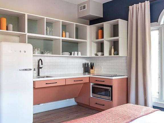 Stay at the intersection of South End and Uptown Charlotte in the walkable historic neighborhood of Dilworth at the apartment Edison House. Enjoy the convenience of having access to trendy local shops and restaurants nearby. This apartment offers self-check-in at 4 pm, 24/7 guest support by text, phone, or chat, and a Virtual Front Desk accessed via mobile device as an option. The property offers on-site management and cleaning services for your comfort and satisfaction. This apartment features a living area with a queen-size bed, a kitchenette equipped with a refrigerator, stovetop, and microwave, ultra high-speed Wi-Fi, and a smart TV with Roku. An in-unit Keurig is available to electrify your mornings. Parking in the complimentary lot is available on a first-come, first-served basis, but spots are limited. Should the lot reach capacity, there is plenty of street parking available nearby. Housekeeping service is available upon request for a fee. Dilworth is one of Charlotte's most sought-after neighborhoods and Charlotte's first "streetcar suburb." This charming locale blends history and nature with a distinct Southern spirit. Apartment Edison House Charlotte is within walking distance of East Boulevard, known for its restaurants, cafes, and shops along its tree-lined streets. Popular attractions like Freedom Park, Discovery Place Nature Museum, and NASCAR Hall of Fame are no more than 2 miles away and easily accessed by car in less than 10 minutes. Whether you are walking or driving, Dilworth's grid-style neighborhood makes it easy for travelers to get around. Rideshares are also available if you want to adventure further into the city. Charlotte Douglas International Airport is located 8.0 miles away. Guests are required to complete a Pre-Arrival Checklist, which includes a virtual ID check, and the option to request early check-in, subject to availability. The property operates through a Virtual Front Desk, and self check-in is entirely contactless. Instructions on accessing the property and apartment will be sent before arrival. The property does not have an elevator, luggage storage, a pool, or a gym. There are no individual controls for central air conditioning and heat, but fans are available upon request. The property has one ADA room with a roll-in shower. Contact the Guest Experience Team for concerns regarding mobility needs.