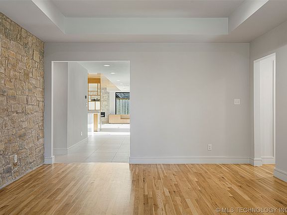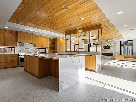 Remodeled down to the studs! Original home was extended to add an updated custom kitchen with high end Jenn Air appliances and family room with fireplace. Hand crafted white oak dining table and two console cabinets flanking fireplace designed by Upside Design included in sale of the home. New hardwood floors and tile throughout the home. White oak cabinets and quartz countertops in kitchen and bathrooms. Primary Suite features a luxurious bath with heated floor, walk in closet with white oak built ins and private access to the backyard. Second full bedroom suite with private bath. Third bedroom features a student desk, walk in closet and loft. Ceiling speakers in family room, kitchen, garage, living room, primary bedroom and primary bathroom controlled by Juke audio receiver. New plumbing, lighting, and electrical throughout! New HVAC. Garage with epoxy floor, storage system, and insulated glass garage door is wired for electric car charger on both sides! Unifi Protect video surveillance system. Perfect midtown location near Utica Square, Brookside, and the Gathering Place. Eliot and Edison Schools.