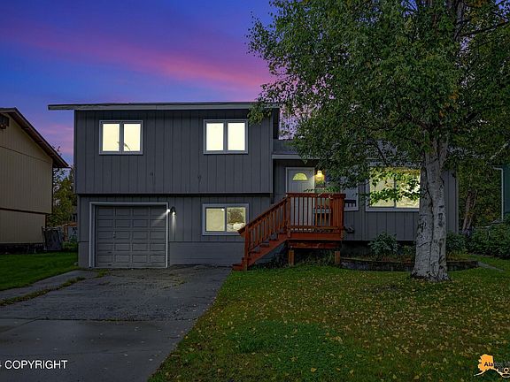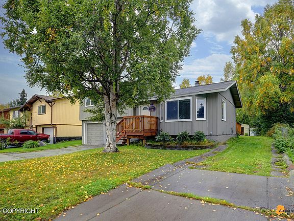 Lovely South Anchorage family home with great southern exposure and lots of natural light. Huge fenced back yard with tons of room for the kids to play. The backyard features a three story kids playset, 2 sheds, dry storage under the deck and a well established raspberry patch. This large lot also has RV parking for all your toys via the oversized secondary driveway,Two decks to enjoy the afternoon sun, walking distance to Lore Dog park, and quick access to the highway, shopping and grocery stores. Priced to sell, book your showings today!!!