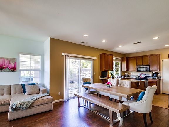 Detached home in gated community in Otay Ranch. 2 story corner home on quiet street. 3 bedrooms and 2.5 bath. Kitchen has maple cabinets with granite counter and stainless steel appliances. Living room and dining has laminate wood floors. Big entry way and open floor plan. Upstairs laundry. A/C. Private side yard with no neigbors. Seller will reinstall closet doors.