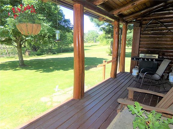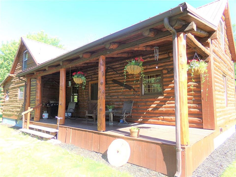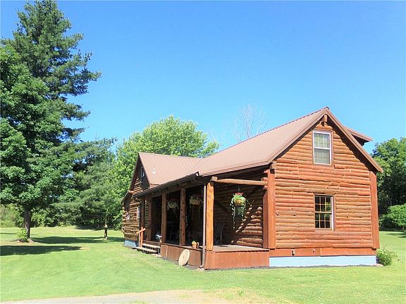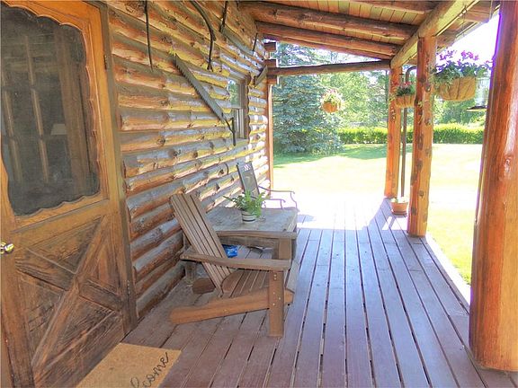 If you enjoy the Adirondacks, then this home is for you. A 2000+ square foot "full log" log home sits on 4.6 acres of land. With a metal roof and recent exterior renovations, you can relax here worry free. The exterior renovations included chinking and sealing of the entire house and replacement of both porch floors. The property hosts a wide verity of trees and has a large wooded area. The interior has a very convenient layout. A large solid oak kitchen with attached eating area and living room. The other end of the house, has an additional living area for a den or family room. Two full bathrooms and first floor laundry provides the convenience rarely found in log homes. Square footage based of blueprints and differs from tax record because the seller added 16 x 16 living space upstairs. A full basement with Bilco doors offers plenty of storage space. With two large covered porches, the hot sun or a summer rain will not force you inside.