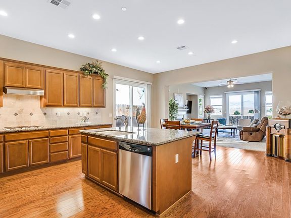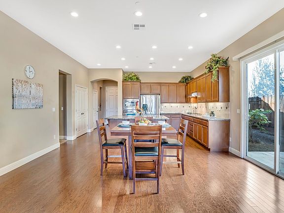 This very modern and heavily upgraded single story family home is perfect for raising a family. The front yard is well-kept and drought friendly. The extra large driveway has room for potential RV parking. Many upgrades include LED canned lighting, hardwood flooring, central heating and air conditioning, dual pane windows, water filtration system for drinking water inside and outside of the home. Living room comes with a gas fireplace, ceiling fan and Bose surround sound. Kitchen comes with large kitchen island, granite countertops, stainless steel appliances. Finished backyard comes with arbor and many fruit trees. Master bedroom has a ceiling fan and spacious walk-in closet. Master bathroom has a deep soaking jacuzzi tub, separate shower and his and her sinks. ADT security lights and 8 cameras stay with the property. You are conveniently located close to schools, parks, shopping, groceries, golf course and hospital.